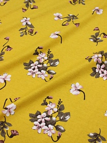Мерный лоскут (ткань в отрезах0 Штапель "Мелкая цветочная рябь на желтой горчице", ш.1.44м, вискоза-100%, 90гр/м.кв