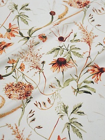 Теплый хлопок "Темно-терракотовые лютики на св.телесно-бежевом", ш.1.5м, хлопок-100%, 160гр/м.кв
