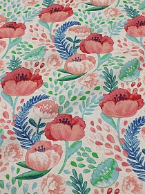 Полулен "Цветущие маки" (на т.суровом), ш.1.5м, лен-30%, хлопок-70%, 147гр/м.кв