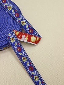 3710 товаровЖак.лента 24мм Желто-красные цветы на васильковом