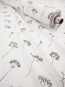 Хлопколен "Зеленые стебельки" цв.белый, ш.1.5м, лен-15%, хлопок-85%, 180гр/м.кв