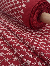 11013 товаровШитье "Изящные ромбики " цв.бордово-красный, ш.1.5м (вышит.часть1.4м), батист, хлопок-100%, 80гр/м.