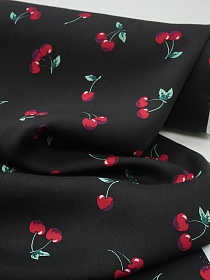 Штапель "Вишенки на черном", ш.1.45м, вискоза-100%, 95гр/м.кв