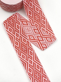 Жак.лента 70мм Красный славянский рисунок на бледно-розовом