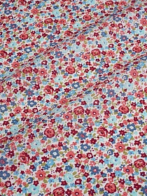 Импорт. хлопок "Мелкая акварель (коралловые, голубые цветы)", ш.1.48м, хлопок-100%, 110гр/м.кв