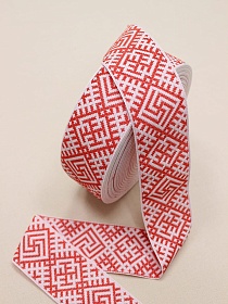 Жак.лента 54мм Красный славянский символ на белом