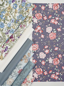 Теплый хлопок "Цветочный ряд" цв.темный туман, ш.1.5м, хлопок-100%, 160гр/м.кв