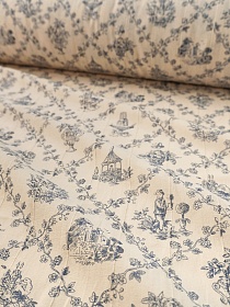 Фактурный хлопок "Шарики - голубые букетики" цв.кремовый, ш.1.4м, батист, хлопок-100%, 60гр/м.кв