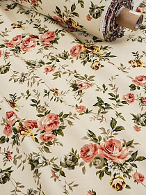 Ткань Дак "Примавера - розовые цветы", ш.1.8м, хлопок-65%, п/э-35%, 205гр/м.кв
