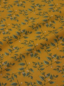 Хлопколен "Цветущие веточки" цв.темная горчица, ш.1.5м, лен-20%, хлопок-80%, 130гр/м.кв