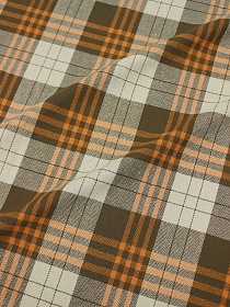 Фуле "Клетка" цв.коричневый хаки/бежево-молочный/оранжевый, ш.1.45м, хлопок-100%, 130гр/м.кв