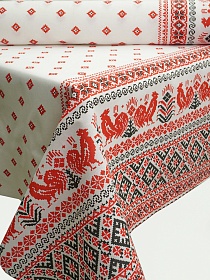 5 товаровПолулен "Вышивка петухи на белом", СОРТ2, ш.1.5м, лен-30%, хлопок-70%, 130гр/м.кв
