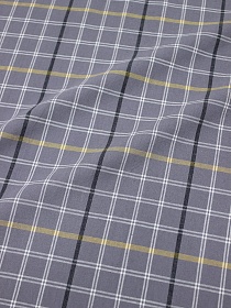7433 товаровВареный (стираный) хлопок "Трехцветная клетка на сером с желтой полосой", ш.2.5м, хл-100%