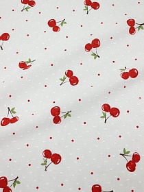 Фактурный хлопок "Шарики - вишенки с точками" цв.белый, СОРТ2, ш.1.5м, батист, хл-100%, 80гр/м.кв