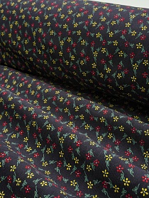 Микровельвет "Красно-желтые цветочки" цв.черный, ш.1.5м, хлопок-100%, 130гр/м.кв