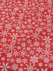 8242 товаровБязь "Белые снежинки на красном", СОРТ2, ш.1.5м, хлопок-100%, 120гр/м.кв