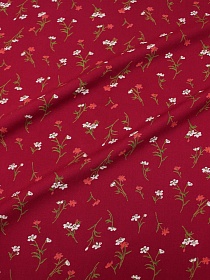 Штапель Премиум "Маленькие цветочные веточки на малиновом", ш.1.45м, вискоза-100%, 120гр/м.кв