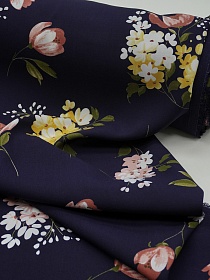 Штапель "Весенние цветы" цв.чернильно-синий, СОРТ2, ш.1.45м, вискоза-100%, 100гр/м.кв