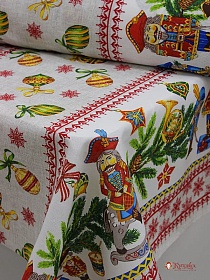 8147 товаровМерный лоскут (ткань в отрезах) Рогожка "Рождественская сказка" цв.бежевый, ш.1.5м, хлопок-100%, 160гр/м.кв