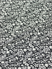 Штапель "Цветочная кадриль (белые цветы на чернильном)", СОРТ2, ш.1.43м, вискоза-100%, 90гр/м.кв