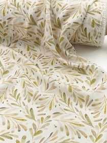 Штапель Премиум "Облачный розарий" цв.сливочно-оливковый, ш.1.45м, вискоза-100%, 110гр/м.кв
