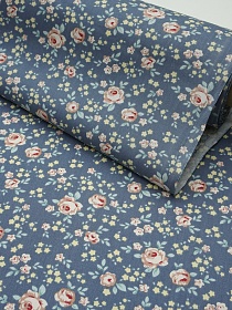 Сатин "Нежная розочка" цв.серо-голубой джинс, ш.1.6м, хлопок-100%, 110гр/м.кв