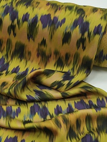 Штапель Премиум "Икат" цв.горчица/фиолетовый, ш.1.5м, вискоза-100%, 125гр/м.кв