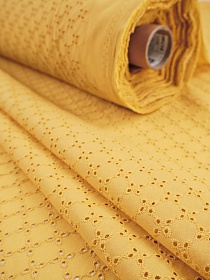 Шитье "Мелкие четырехлистники" цв.медово-желтый, ш.1.5м (выш.часть 1.37м), батист, хлопок 100%