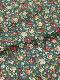 2470 товаровИмпорт. хлопок "Розы кораллово-терракотовые" цв.т.зеленая морская волна, ш.1.45м, хл-100%