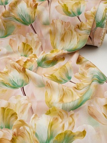 Вискозный шифон Цифр.печать "Слияние нежности" цв.св.лимонный, ш.1.55м, вискоза-75%, нейлон-25%, 80гр/м.кв