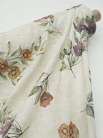Мерный лоскут(ткань в отрезах)Шитье "Милые цветочки" (фестоны с 2х сторон) цв.кремовый, ш.1.3м, хлопок-100%, батист, 80гр/м.кв
