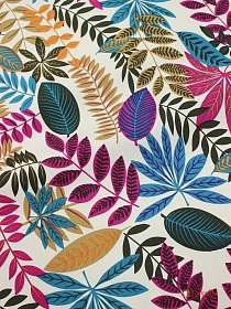Интерьерный хлопок "Хоровод листьев на молочном", ш.1.54м, хлопок-100%, 250гр/м.кв